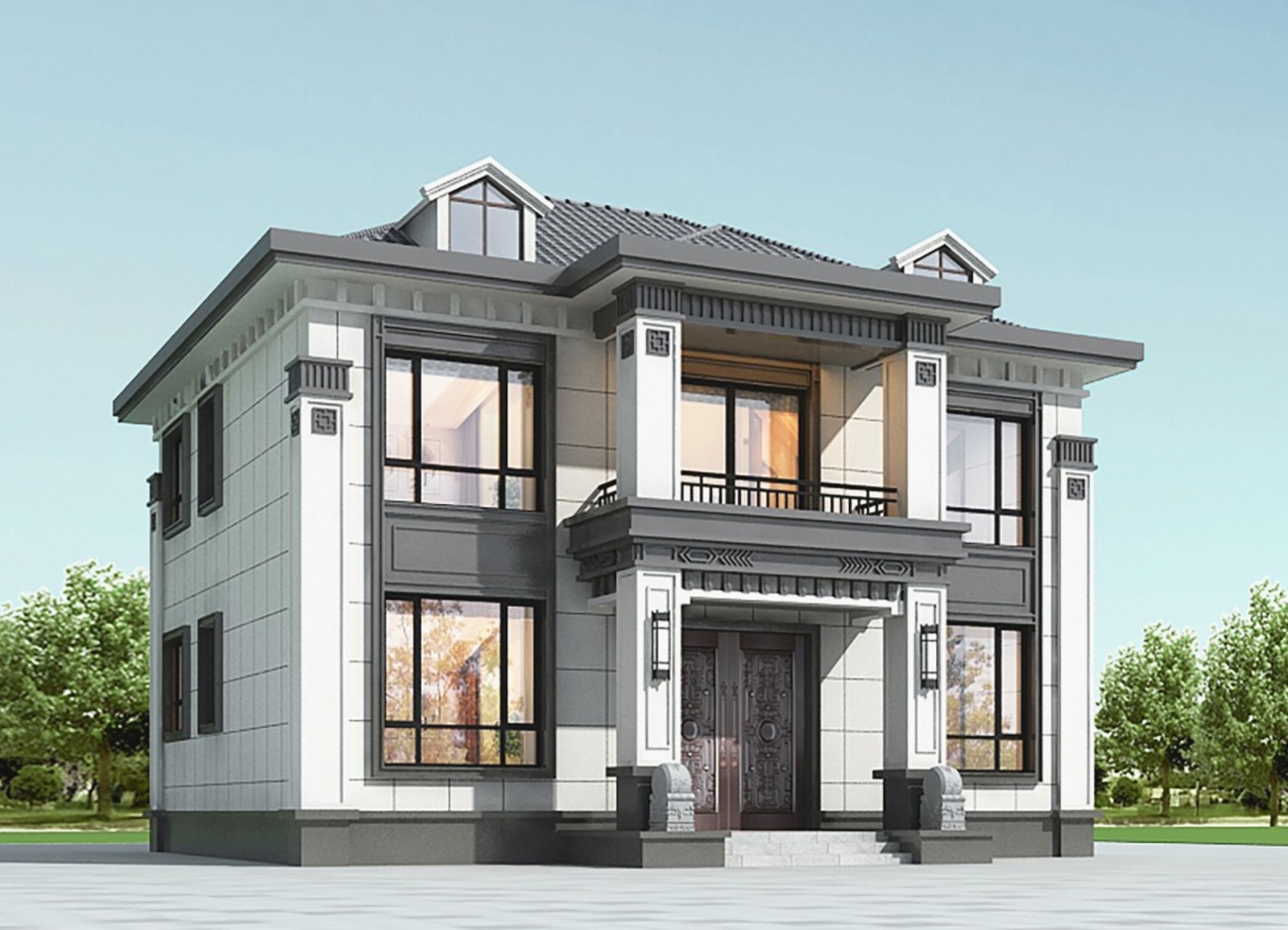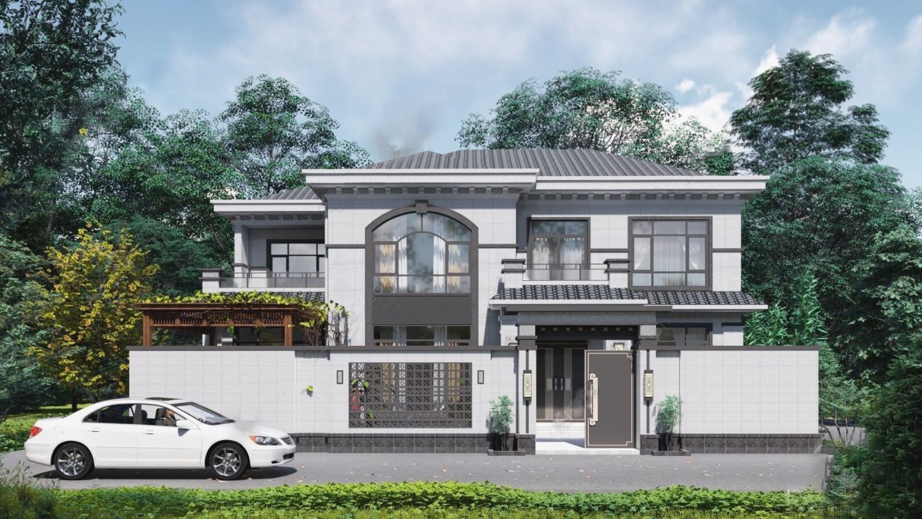 安庆011 两层新中式(15.43x12.66米)-【易设计】
